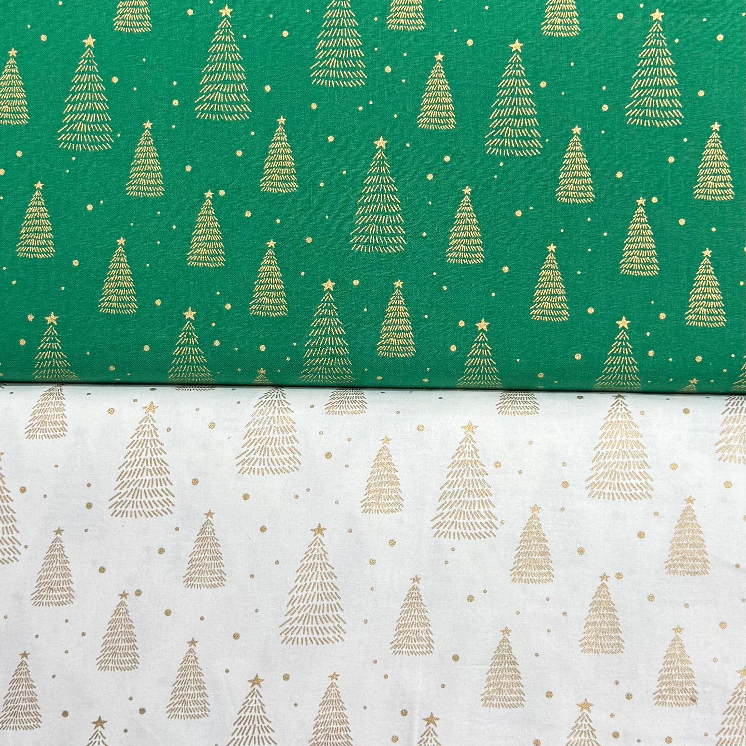2 Piece Bundle Digitally Printed Gold Foil Christmas 100% Cotton- 45" Wide (Tree Bundle) - 2 Metres (1 x 2 Metre Pieces) is backordered and will ship as soon as it is back in stock.