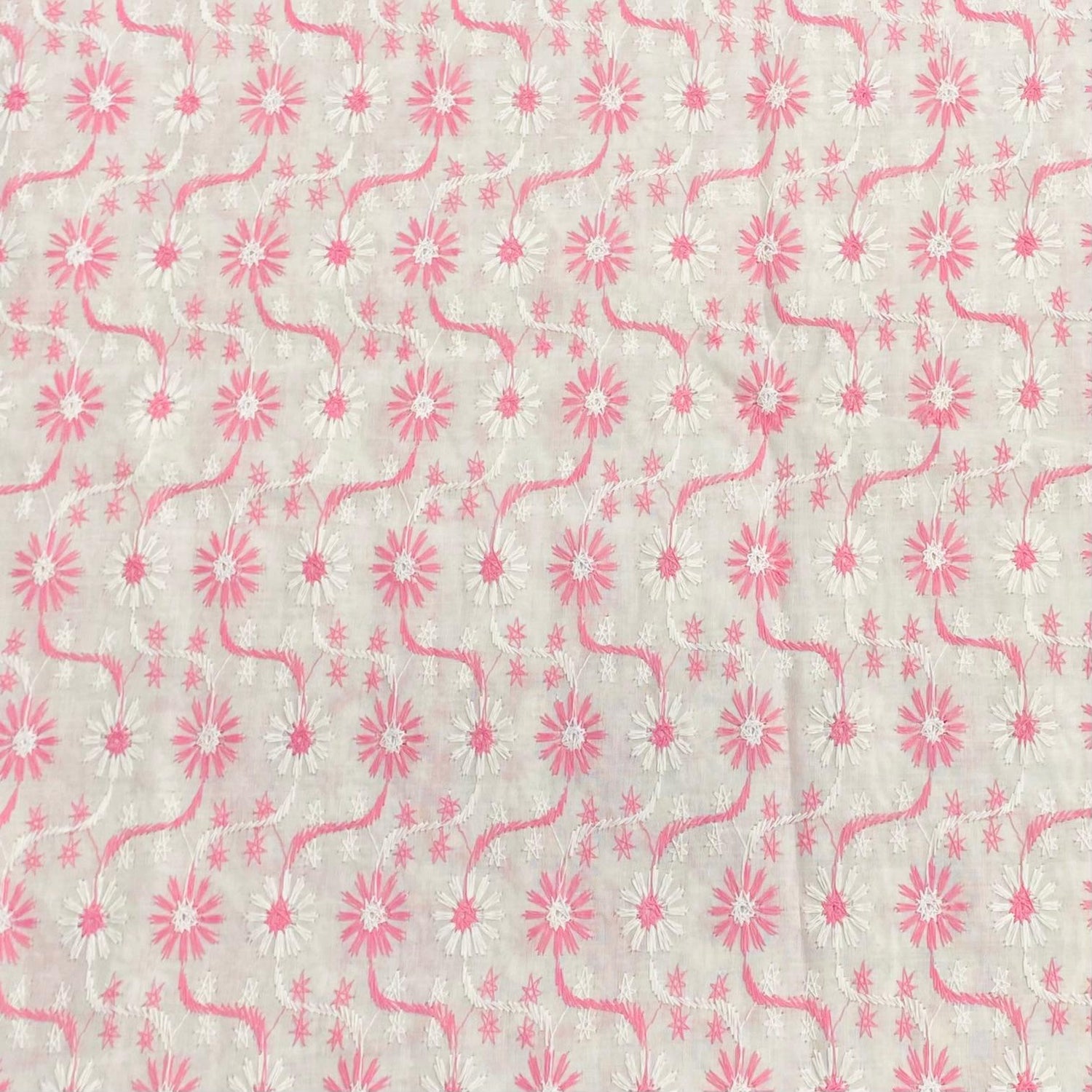 3 Metre Broderie Anglaise Floral Cotton - 45" Wide (Pink & White) - 3 Metre is backordered and will ship as soon as it is back in stock.