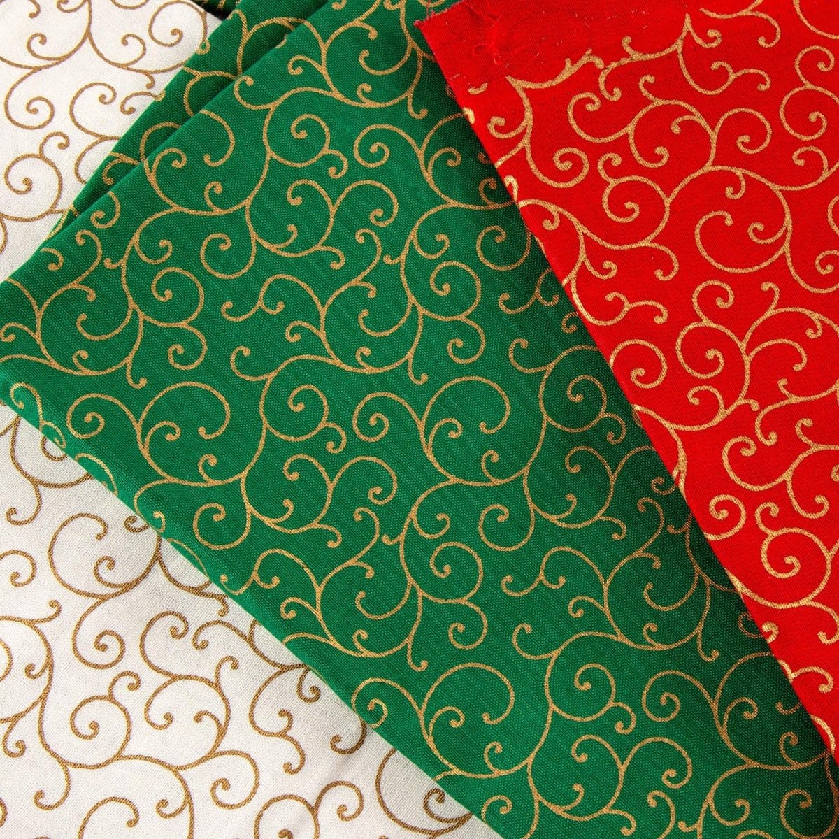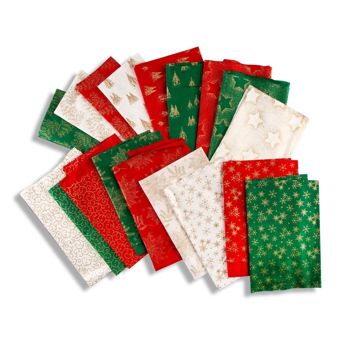 Details - A super offer to stock up your festive fabric collection. In this bundle you will receive a total of 18 fat quarters (8 x Green, 8 x Red, 8 x Ivory) in our fantastic gold foil, 100% cotton. Each fat quarter is carefully cut and folded making it easy to store and use when required.