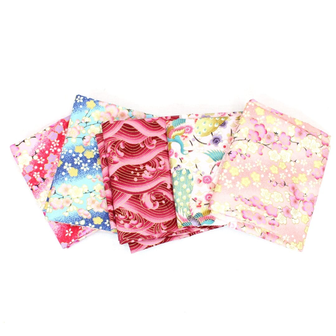 5 Piece Exclusive Oriental Gold Foil Fat Quarter 100% Cotton - Pink