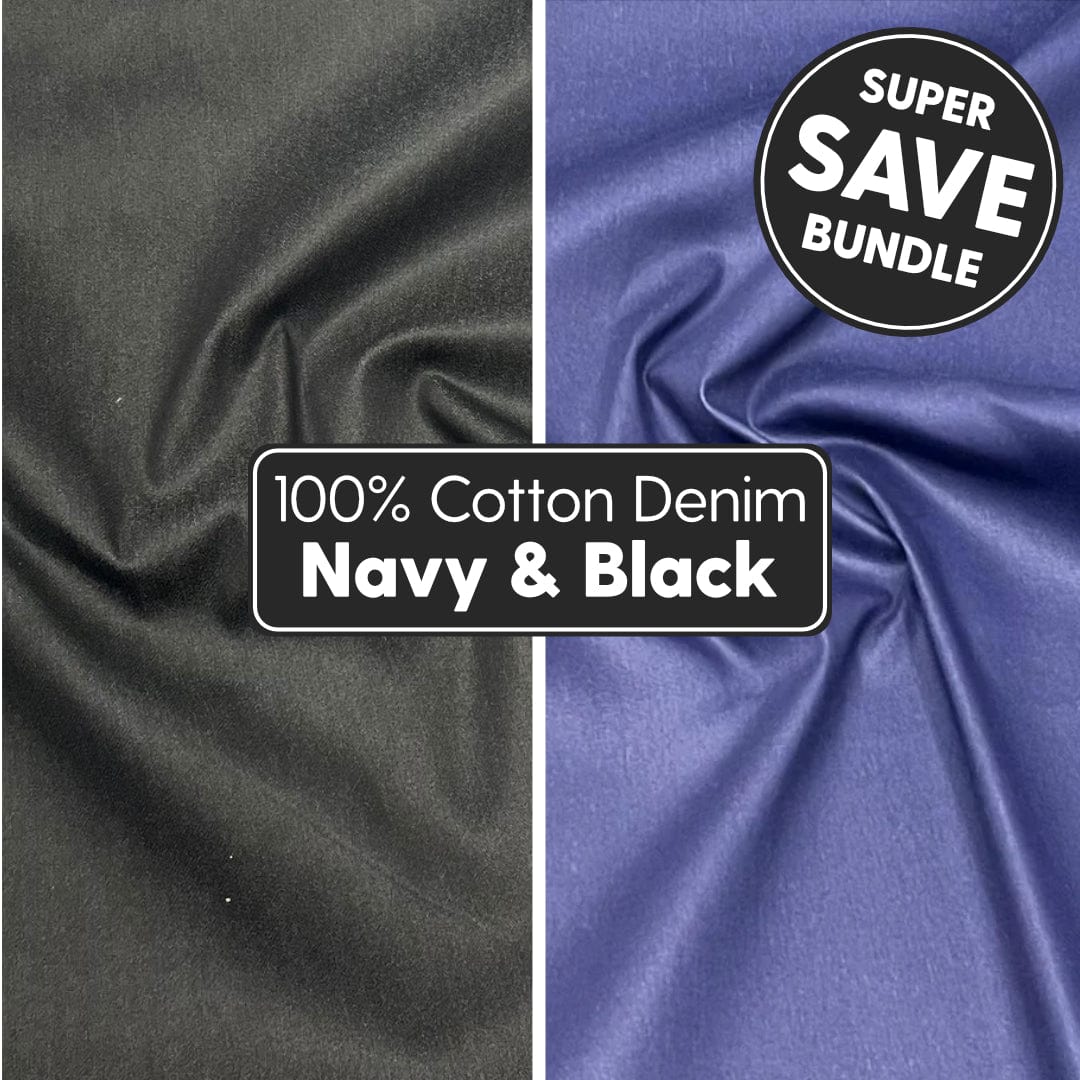 6 Metre Bundle 100% Cotton Denim Fabric- 55" (Black & Navy)