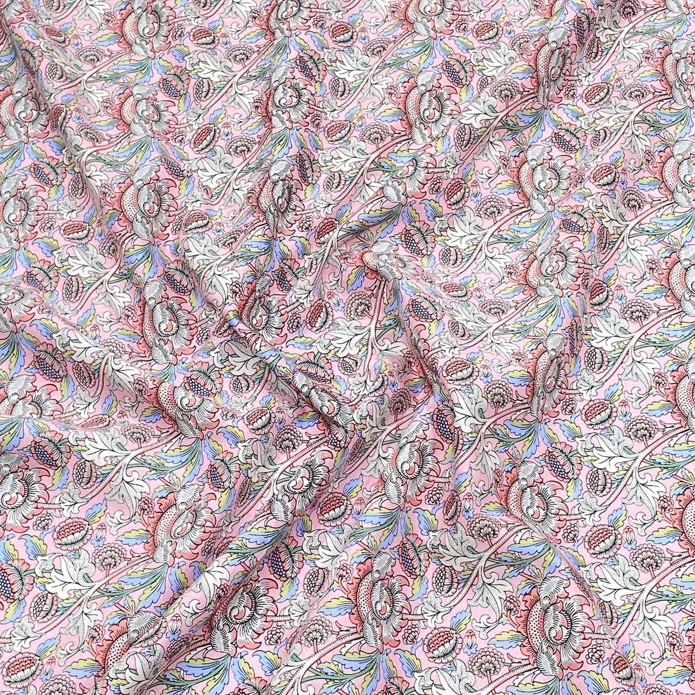 Per Metre Luxury Dressmaking 100% Cotton Lawn- 60" (Pink Flowers) - Per Metre is backordered and will ship as soon as it is back in stock.