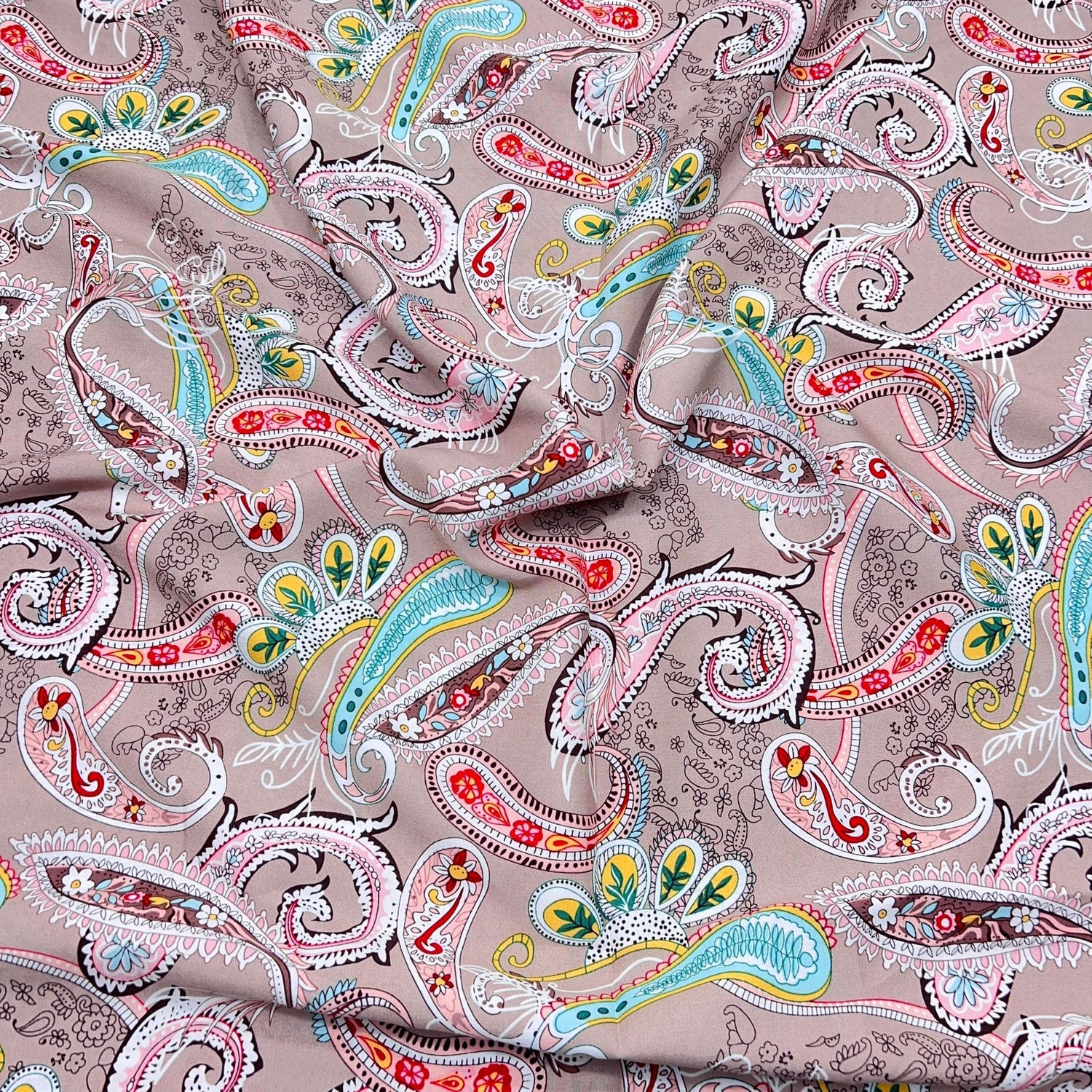 3 Metres Printed Dress Making Viscose- 55" Wide (Beige Paisley)