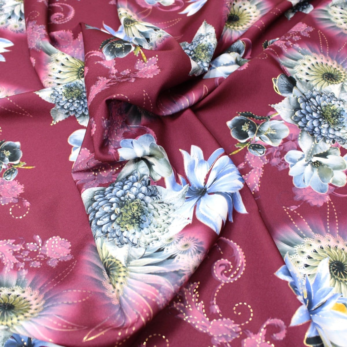 3 Metre Luxury Gold Foil Floral Sateen ‘Illusion’ - 55" Wide Dark Grape - 3 Metre is backordered and will ship as soon as it is back in stock.