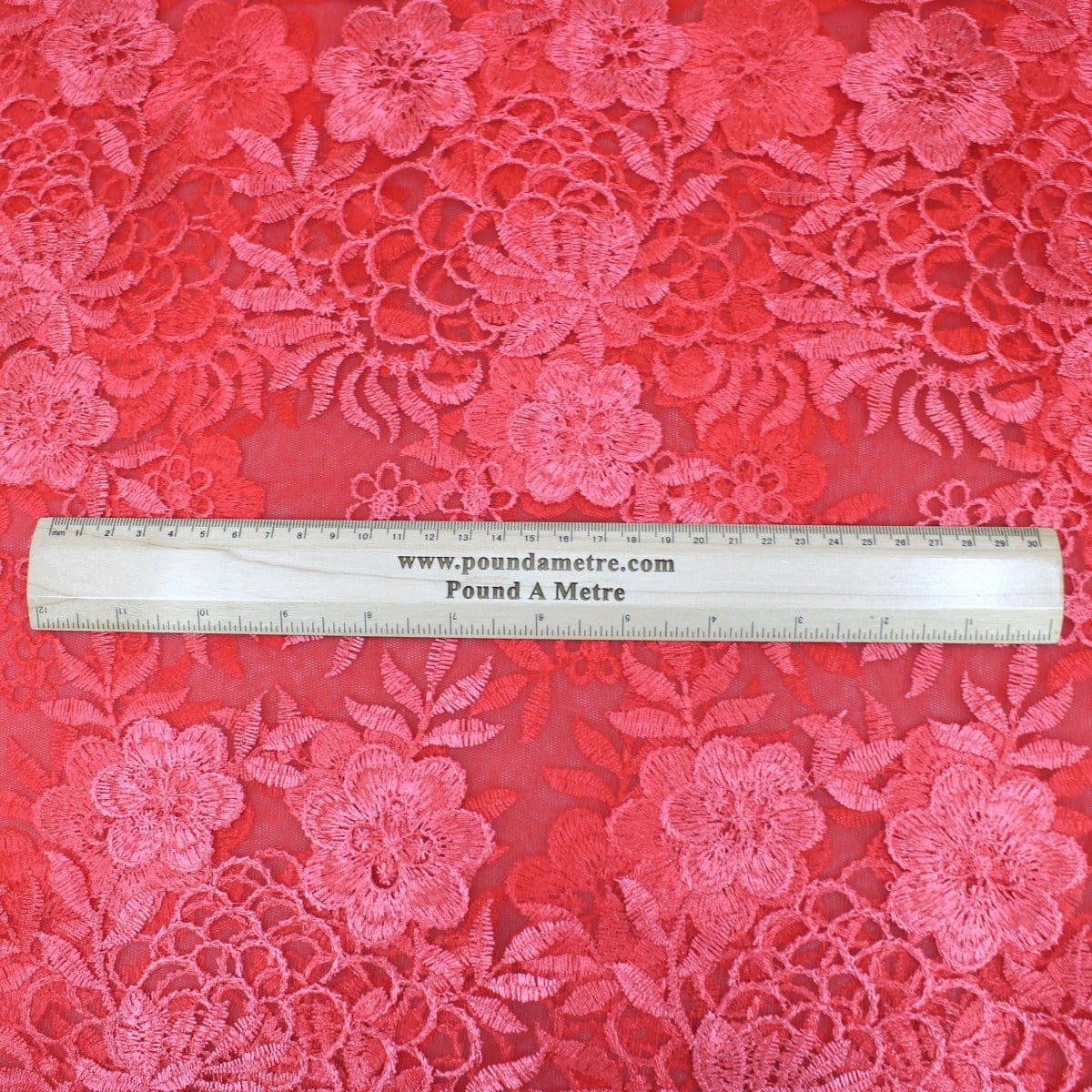 3 Metres Luxury Detailed Embroidered Bridal Lace Fabric - 55" Wide Strawberry Red - 3 Metres is backordered and will ship as soon as it is back in stock.
