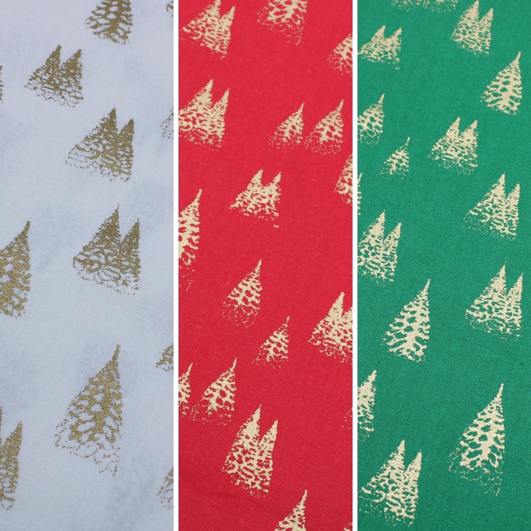 Gold Foil Premium 100% Quilting Cotton "Festive Tree" - 3 Colours