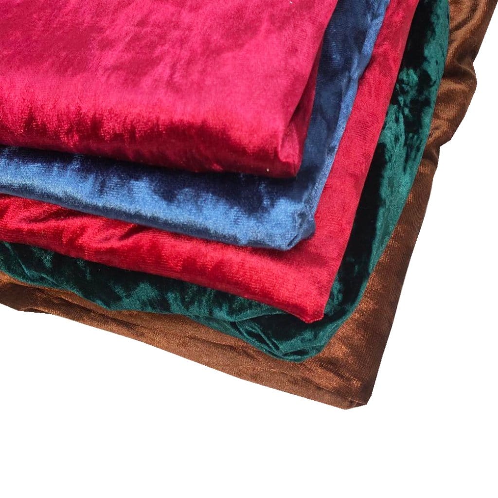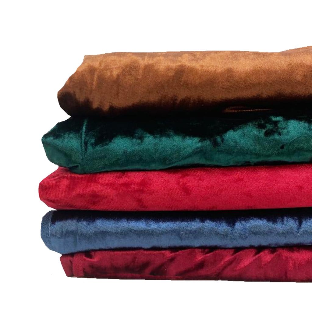 Details- A perfect palette of 5 premium quality spandex (stretch) velvet fabrics. Every piece is selected carefully by our team to provide you with a varying selection of plain velvets.