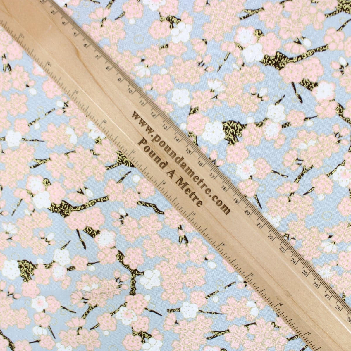 Premium Quality 100% Oriental Foil Cotton - Pink Cherry Blossom - 55" Wide Light Grey - 1 Metre is backordered and will ship as soon as it is back in stock.