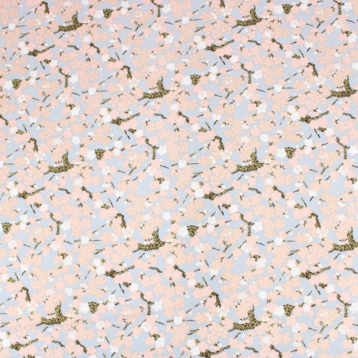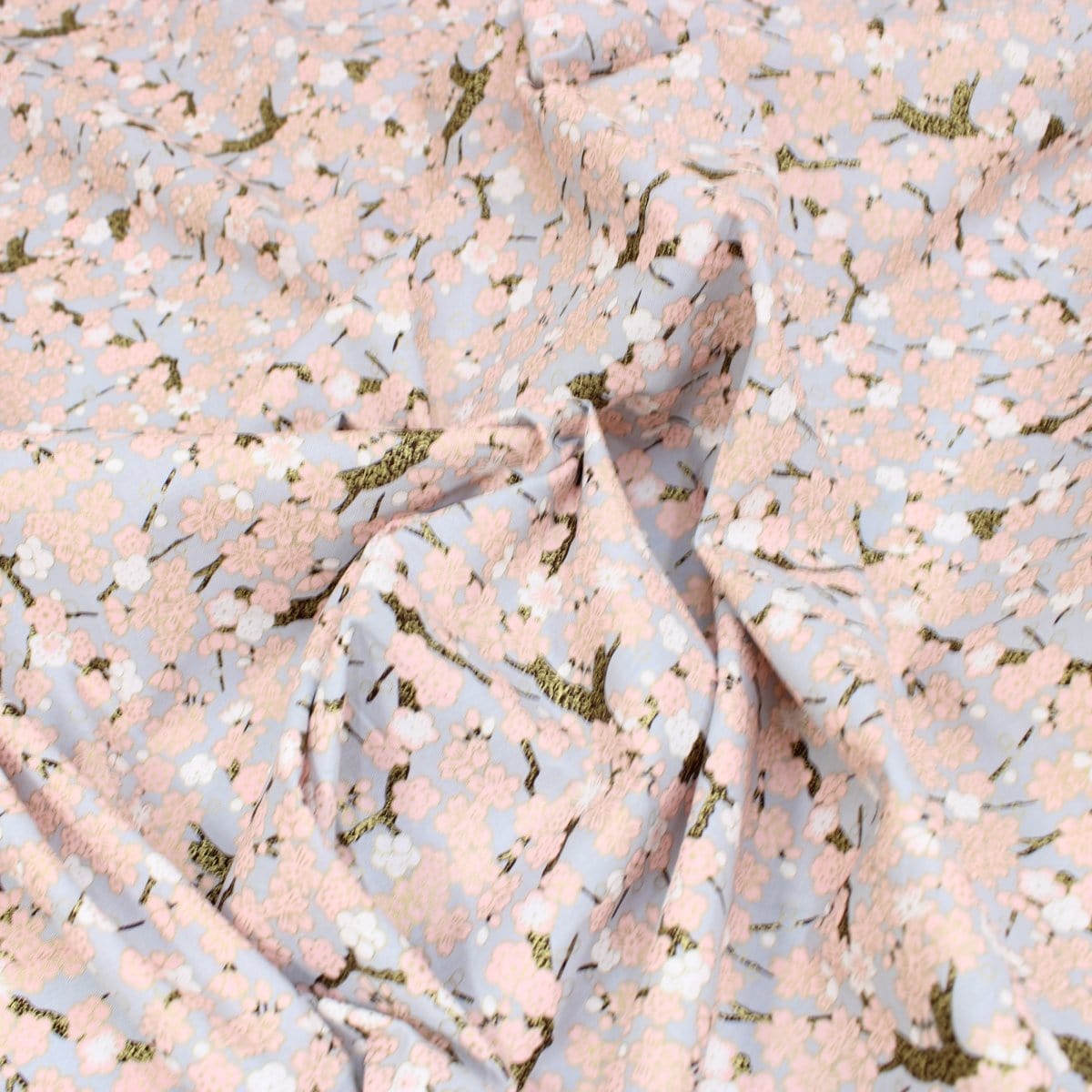 Premium Quality 100% Oriental Foil Cotton - Pink Cherry Blossom - 55" Wide Light Grey