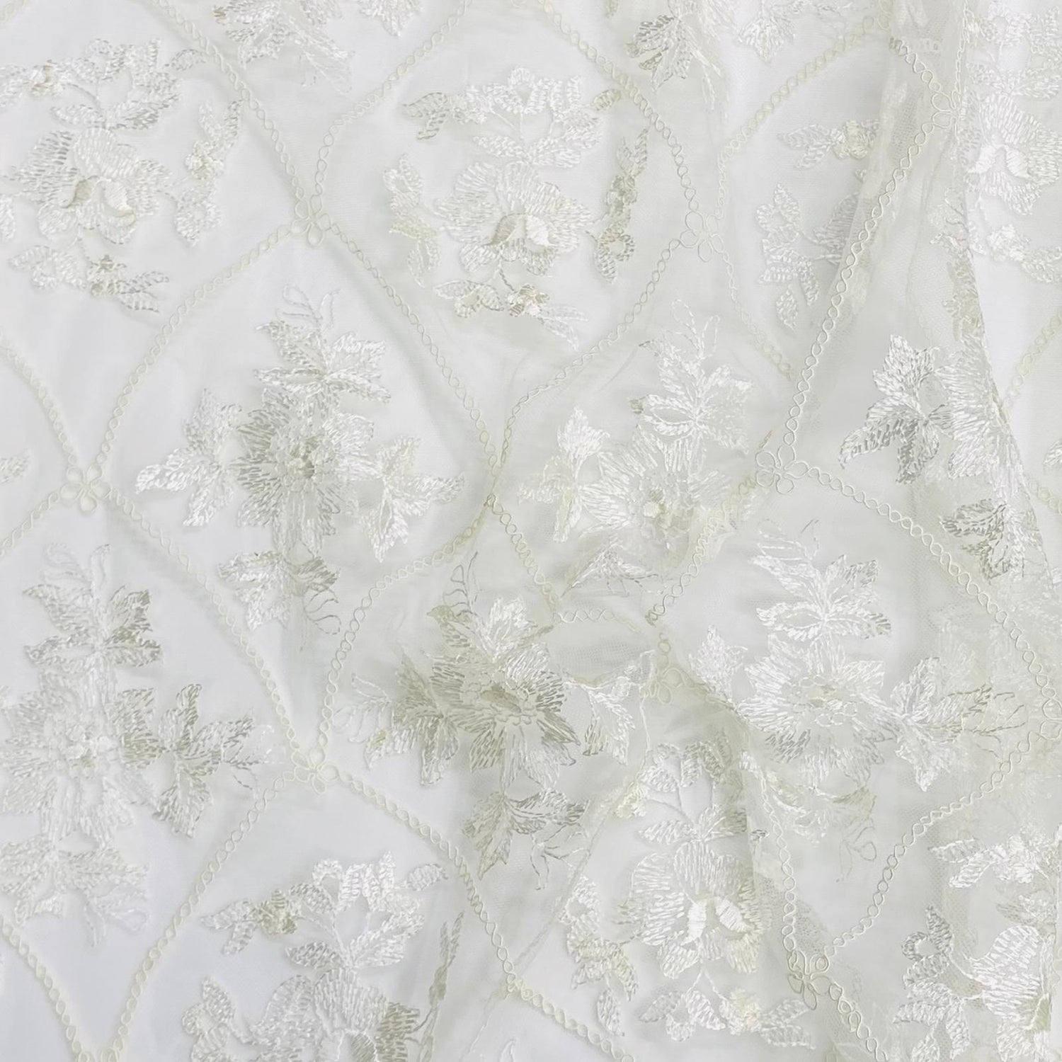 Bridal white lace is a timeless, romantic fabric celebrated for its delicate patterns and graceful transparency. Crafted with intricate floral or geometric motifs, this lace offers a soft, elegant drape and a luminous white hue that symbolizes purity and sophistication. Its refined texture adds depth and femininity to any design, making it perfect for wedding gowns, veils, bodices, sleeves, and delicate overlays. Lightweight yet visually impactful, bridal white lace elevates any bridal creation with an ethereal, luxurious touch.