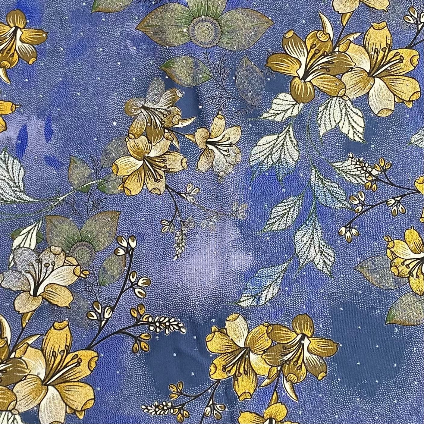 The standout feature of this fabric is its diamante-inspired printed design—a pattern that imitates the sparkle and arrangement of delicate gem motifs. These prints add a touch of sophistication without the use of actual embellishments, keeping the fabric lightweight while still offering a glamorous, eye-catching look. The prints are created using high-quality pigments that deliver crisp detailing, rich tones, and fade-resistant colours suitable for both everyday wear and special occasions.
