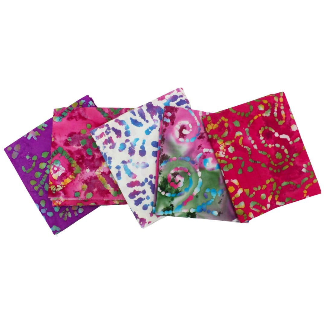 Details - This 5 Piece Exlusive Fat Quarter is 100% Cotton Batik and features a vibrant new range of fabrics that are perfect for a variety of projects. Whether you're quilting or crafting, these fabrics are sure to add style and versatility to your creations. It's perfect for your next crafting project!